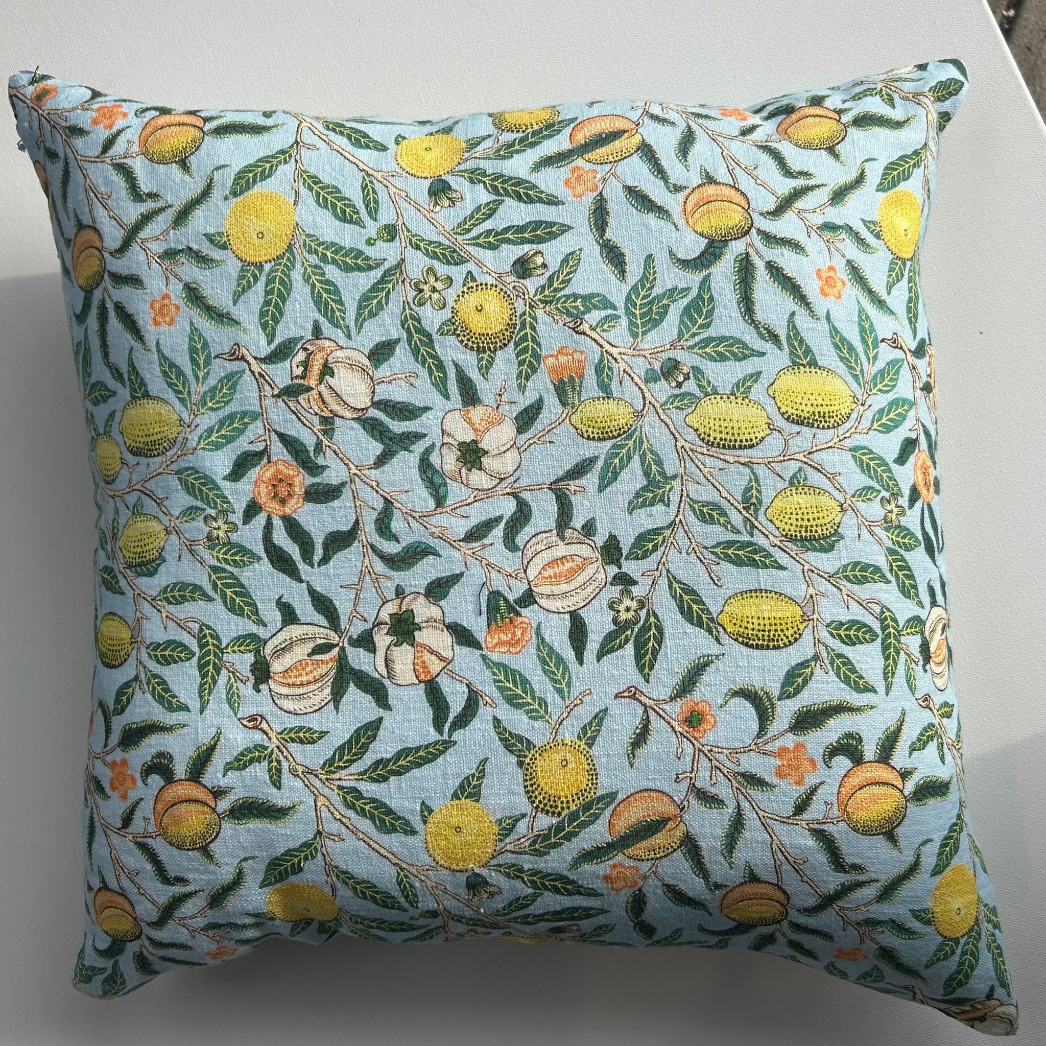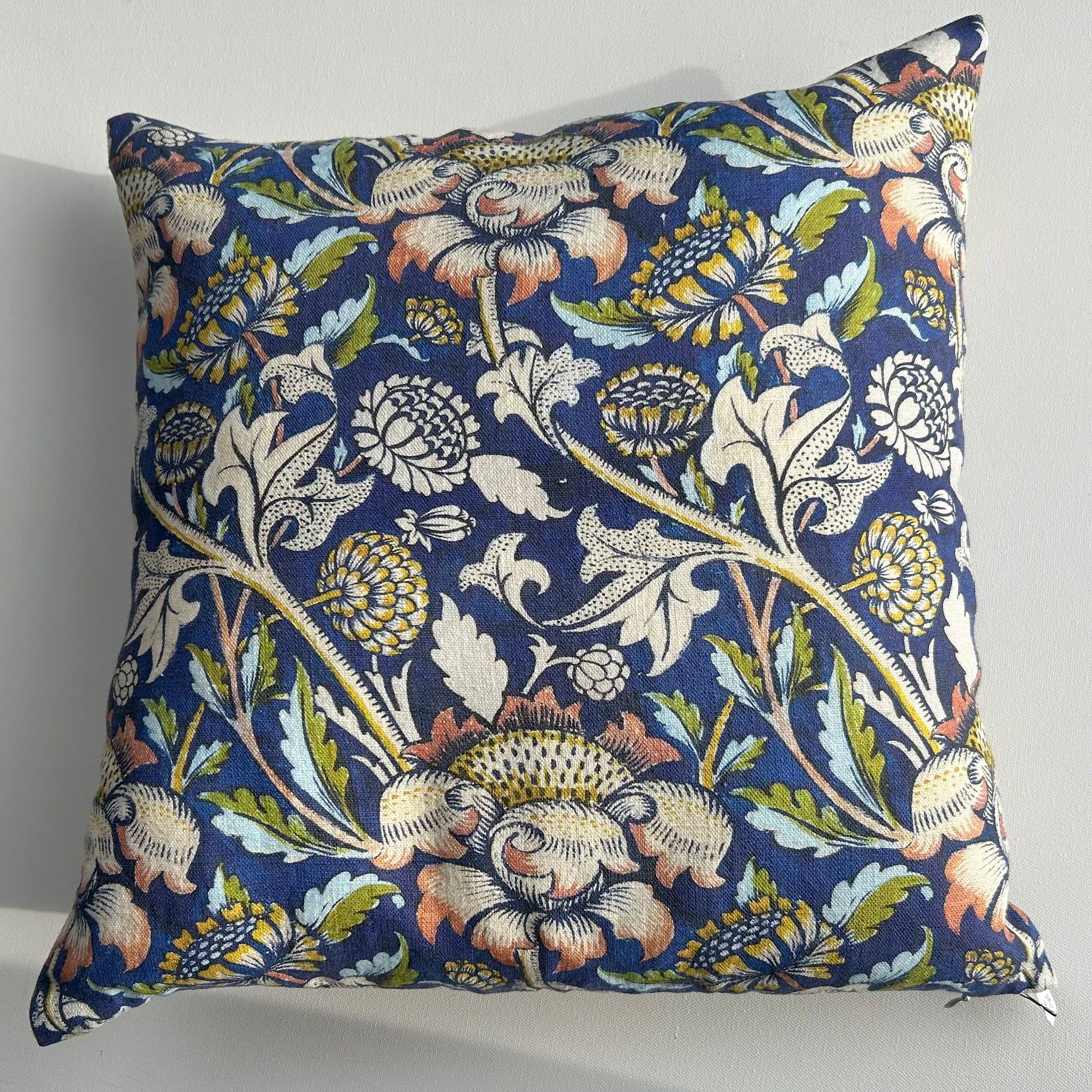 18" linen pillows with lovely floral prints by William Morris.  Zippered cover is patterned on both sides, and comes with feather filler.
