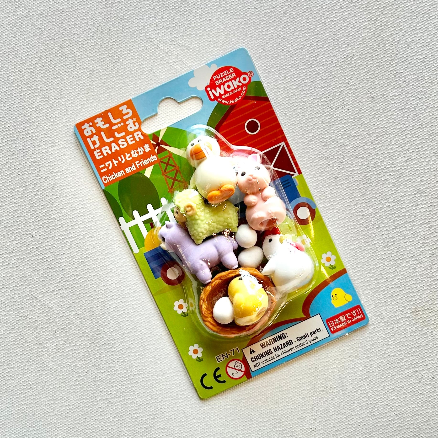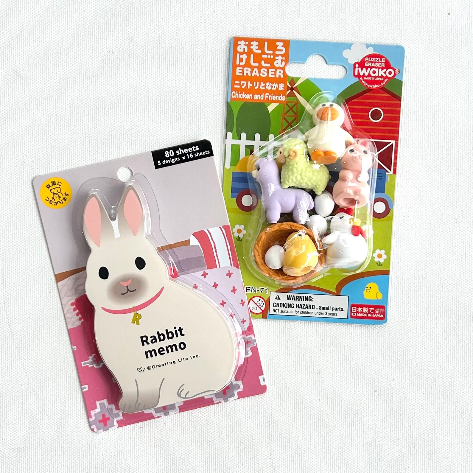 Fun non-candy-basket-stuffing! Bunny notepad is 2 3/4" by 4 3/4". Printed on each page with 5 different bunny designs. In farm animal eraser set each piece is approximately 1 1/4".