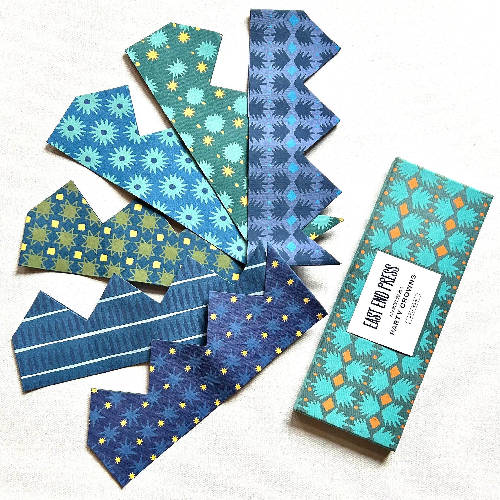 Box of six paper crowns in mixed prints. Perfect for any fête!